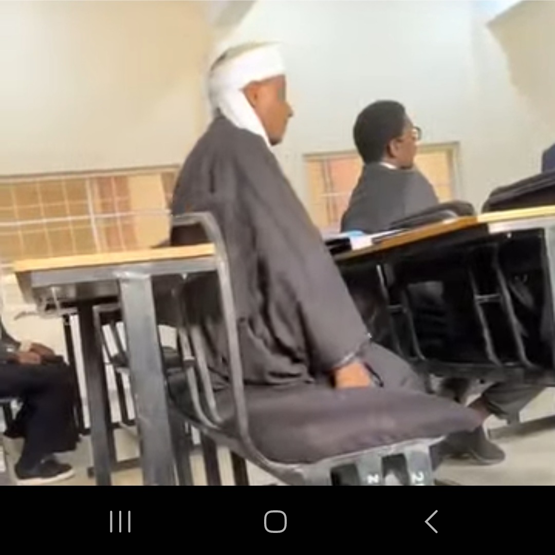 Sanusi II joined his classmates for early morning lectures, dressed in a black long gown with a white head tie. He sat comfortably at the back of the class in a three-seater during the session.